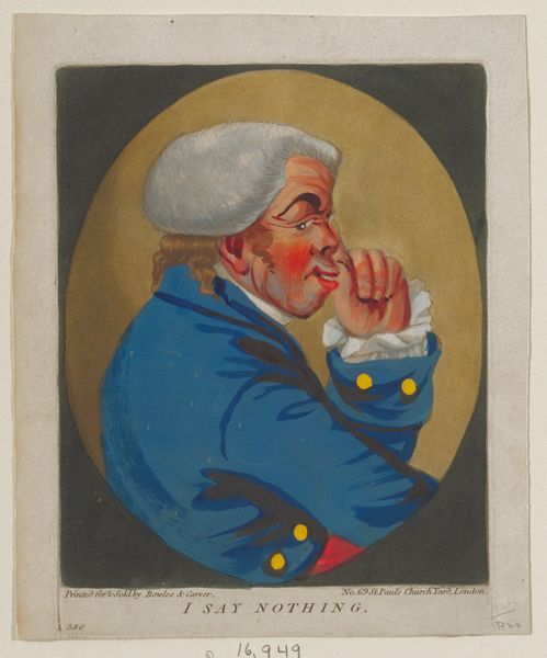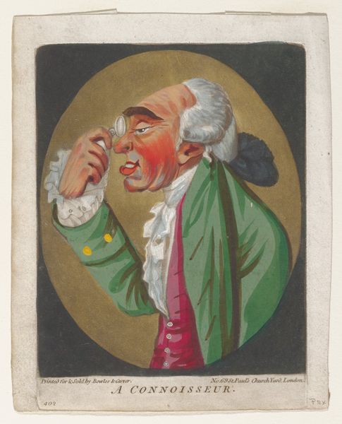 Here is the audio guide script about Robert Dighton's artwork. This print, "We're All in the Suds," was created by Robert Dighton. It depicts a man holding a newspaper and a plate with food. The newspaper, prominently displayed, is titled "Gazette Extraordinary," suggesting a time of upheaval and unusual news. The dish he's holding might represent sustenance, but his surprised expression tells us he's not necessarily enjoying it. The title, "We're All in the Suds," along with the man's reddened face, hints at being in hot water. The phrase itself conjures images of being submerged, perhaps overwhelmed by the era's events. Consider the motif of the "ship of fools," common in earlier art. The feeling of shared misfortune, of everyone being in the same predicament, echoes through time. This image acts as a mirror to our anxieties, connecting past and present. It's a reminder that we are all prone to life’s little mishaps.