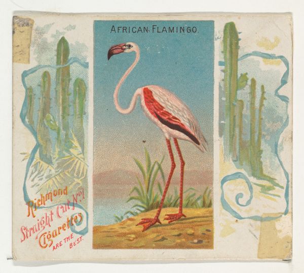 This is "Swintern's Love-bird," a lithograph created by Allen & Ginter for their series of cigarette cards called "Birds of the Tropics." These cards were produced during a time of expanding global trade and heightened interest in exotic cultures. The late 19th century saw the rise of consumer culture, with products like cigarettes using images of the “exotic” to enhance their appeal. While seemingly harmless, this romanticized view of the tropics often masked the realities of colonial exploitation and the environmental impact of resource extraction. The image of the lovebirds evokes a sense of harmony and idealized nature. Yet, the very act of capturing and commodifying this image speaks to a complex relationship between humans and the natural world, raising questions about the power dynamics inherent in representation. What do you think about the ethics of using nature to sell commercial products?