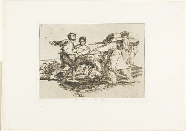 "That's tough!" is an etching by Francisco de Goya, part of his series "The Disasters of War," created between 1810 and 1820. Goya, living in Spain during a time of conflict and political upheaval, captured the grim realities of the Peninsular War in these prints. Here, we witness the brutality of war as a soldier stands triumphantly amidst death and despair, a disturbing contrast of power and vulnerability. Goya uses stark lines to evoke a sense of anguish and injustice, while the title adds a layer of cynical commentary on the indifference to human suffering. The emotional impact of this work lies in Goya’s unflinching depiction of violence and its consequences. He invites us to confront uncomfortable truths about human nature and the cost of conflict. It's a meditation on the psychological and physical trauma inflicted during war, challenging traditional heroic narratives. "That's tough!" is an enduring reminder of the need for empathy and compassion in the face of inhumanity.