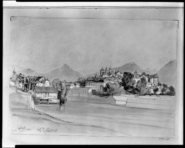 Editor: This is Lewis Vulliamy's "Hill Town in Italy," a watercolor landscape. It feels very topographical, almost like an architectural rendering. What are your thoughts on this work? Curator: Topographical, yes, but consider the colonial gaze inherent in depicting a foreign landscape. What narratives are being constructed and whose perspectives are centered here? It speaks volumes about power dynamics and ownership. Editor: I see what you mean. The artist is choosing to represent this place, defining it for a Western audience. Curator: Exactly! How does this impact our understanding of Italian identity and place? Vulliamy's work isn't just about capturing scenery; it's about shaping perceptions. It invites us to look closer at the history of representation. Editor: That's a lot to think about. I’ll never see landscapes the same way.
