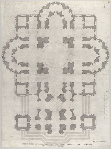 Pavlo Makov created "Small Rosarium “West”" with ink and watercolor on paper. The graphic quality of the piece suggests a blueprint or map, but the organic feel of the marks destabilizes any real sense of order. I'm drawn to the contrast between the graphic, almost architectural rendering of the garden’s layout and the fluidity of the ink washes. There’s a tension between control and chance. The ink pools and bleeds, creating a sense of depth and shadow. The thin washes let the paper breathe, giving the impression of a world both present and ephemeral. The piece is a symphony of greys with touches of faded red, which adds a layer of unexpected beauty. The individual marks create a sense of movement, making the garden feel alive, like it’s constantly changing. The labyrinthine quality is interesting, reminding me of Piranesi’s etchings of impossible architectural spaces, with their sense of mystery and the infinite.