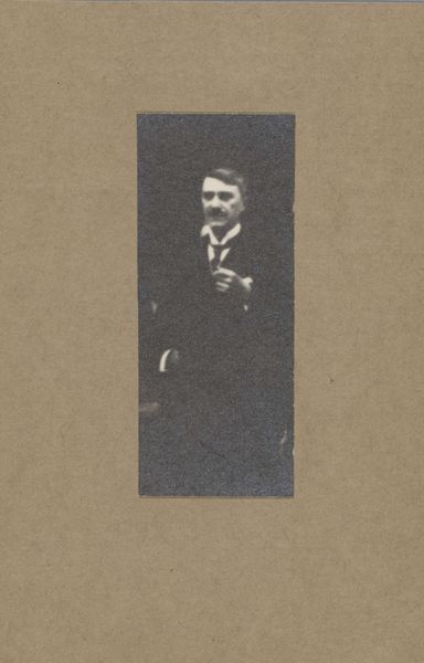 Curator: This print, likely photographic in origin, offers a reproduction of a portrait of King Charles IX, created sometime before 1873. Editor: It has a certain melancholy stillness, doesn't it? Almost like a fading memory trapped within that small frame in the book. The edges around the portrait almost looks aged. I wonder, who was drawn to immortalizing this figure, and in such a delicate, unassuming way? Curator: The choice of reproductive medium—photography applied to printmaking—raises interesting questions. Why translate a painting through the relatively new technology of photography at that time? Was it about wider accessibility, or perhaps a perceived 'objectivity' lent by the photographic process? Think about how the print makes this painting a commodity, allowing it to circulate among collectors or as historical documentation. Editor: Perhaps it offered a touch of drama, like bringing history into tangible form, accessible from this almost voyeuristic point of view, seeing the king within the pages of a book. Knowing his tumultuous reign adds to the haunting feeling, don’t you think? He looks almost burdened in this shot. Curator: It’s also key to consider the social function here. Royal portraits reinforced power and legitimacy. Reproducing that portrait, even through photography and printing, still taps into that historical power structure and it’s all about control and visual dissemination in my point of view. But who was this dissemination intended for, and why? That, I think, is an unanswerable question that drives the material implications in that reproduction. Editor: True. Perhaps what fascinates me most is this intimacy of the medium. You could hold this history in your hand, hidden behind closed covers like a secret—one charged with the complexities of ambition, regret, and royal duty. I guess in that sense, art truly is what you bring to it as well. Curator: Indeed. Examining its materiality invites considerations far beyond the sitter's identity, touching upon systems of production, access, and historical memory-making, to better appreciate these older paintings. Editor: Precisely, It shifts our focus and, suddenly, a portrait of a king transforms into something that invites deeper introspection about history itself.