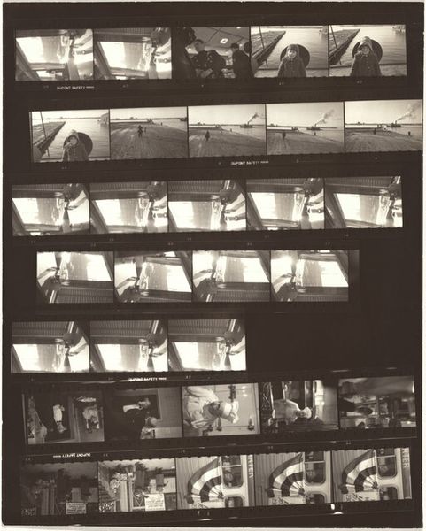 This is Robert Frank’s ‘Family—Wellfleet 10’, a photogram of film strips, printed in black and white. It’s a real dance with light and shadow, a process laid bare. The image is full of texture – the grain of the film, the grit of the beach, the rough edges of the strips themselves. It's far from slick, revealing the artist’s hand at every turn. The blacks are deep and pools, and the whites are stark. The sprocket holes of the film are clearly visible and become a sort of rhythm in the piece, like a musical score. The composition is almost brutally honest, with the film strips laid out like evidence. That repeated image of the truck cab really gets to me; its as if Frank were saying something about the constraints of family life. It’s a reminder that art is about seeing, feeling, and then showing, even when – or especially when – it's a little messy. You might also want to look at the photograms of artists like Laszlo Moholy-Nagy, who also experimented with the material qualities of photography.