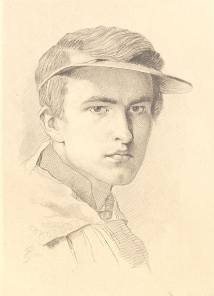 Curator: This is Henrique Pousao’s "Self-Portrait," created in 1876 using pencil in a traditional sketch style. Editor: Immediately, I'm struck by the almost melancholic quality. The shading feels heavy, like a weight on his features. Curator: The artist, of course, would have been situated within the prevailing academic art practices. This work should be seen as the artist portraying himself in relation to those expectations. The intensity of the gaze in the context of his race and place can lead us to reflect about representation at the time. Editor: Yeah, there's something incredibly raw about it. The lack of color throws everything into high relief, highlighting every line and contour, right? It reminds me a little of daguerreotypes. You get a sense of the texture of the paper almost like you could reach out and feel it. It looks so… immediate. Curator: His academic training is very evident, the clear structure of the drawing reflects academic traditions. At the time self-portraits were also statements. So, who do you think he wanted to present himself to be through this portrait? Editor: Hmmm. Good question. It looks like he’s still forming the persona he wants to portray. You see that in his expression… is it just me, or does he seem both vulnerable and incredibly self-aware? It's that youthful thing where you are both everything and nothing all at once. I wonder if he knew what he wanted to achieve through art? Curator: Absolutely, and if we bring in considerations about the performance of masculinity, and of the male artist at this time, new depths begin to unfold in how we look at this very compelling, direct image. It encapsulates many societal and artistic values of its moment. Editor: I am struck by the mood of the piece… how Pousao could extract the complexities of existing into something made only of pencil strokes and paper. Makes you feel that, perhaps, all the colors we see around us are just variations on what this portrait has already captured. Curator: Indeed. I find this self-portrait a complex expression and intersection of an emerging artist, a specific cultural and political time and his representation.
