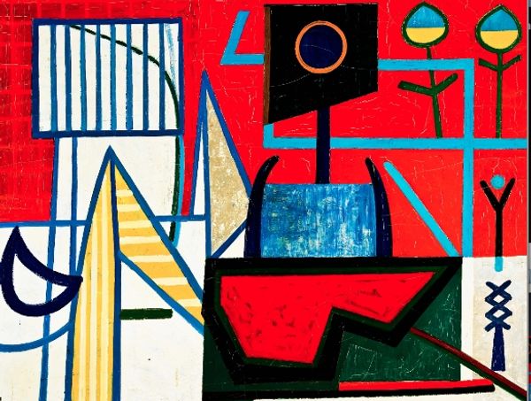 Constantin Flondor made this painting, titled "Unstable Balance," in 1967. Its geometric abstraction and muted palette speak to an artistic language shared across the Eastern and Western blocs during the Cold War. But don’t let the visual commonalities fool you. Consider the context: Flondor was working in Romania, under the communist regime of Nicolae Ceaușescu. In this light, the painting’s title reads as a commentary on the delicate socio-political conditions of the time. The artwork's fractured planes and clashing colors seem to reflect the underlying tensions of a society caught between ideology and reality. The black and white square, disrupted by irregular lines, could represent the fractured unity of the state. For art historians, understanding this piece requires digging into the archives, researching the cultural policies of communist Romania, and exploring the networks of artists who sought to express themselves within or despite those constraints. Only then can we appreciate the subtle ways in which art can reflect and challenge the dominant narratives of its time.