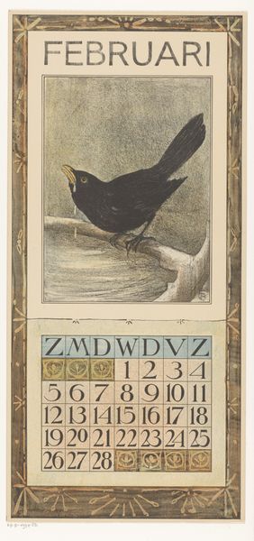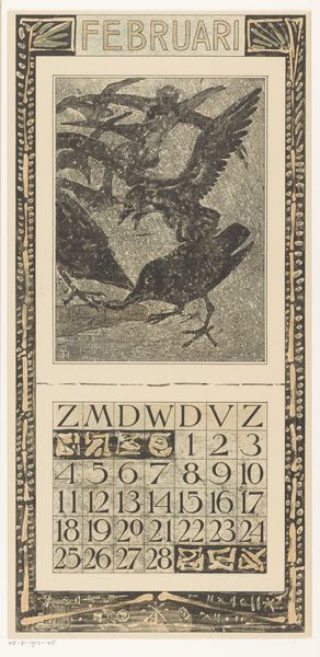 Theo van Hoytema made this calendar page for June with 'kwak', I guess that's night heron in Dutch, and it was created with lithography. Look at the subtle colour palette, a limited range of muted greens, browns, and creams. It's so understated, and yet the bird's stare is so intense. There's a real tension between the delicate, almost fragile quality of the lithographic marks and the piercing gaze of that bird. It reminds me of a kind of process of layering and building, much like painting itself. The texture is smooth, but you can almost feel the grain of the lithographic stone. The way the ink is applied gives it a slightly speckled effect, like the feathers themselves. The little row of birds on top of the dates have such a cute, grumpy energy, almost like a gathering of gossiping neighbours. It's definitely got a touch of Aubrey Beardsley about it. Van Hoytema's prints create a world that's both whimsical and deeply serious, leaving us to find our own meaning in the ambiguity.