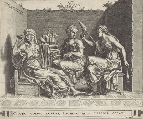 J.F. Clemens created this engraving, "Urania og Gæa sidder på en firkantet stenblok," likely in the late 18th or early 19th century. The artwork presents the muses Urania, representing astronomy, and Gæa, the personification of the Earth, seated together. Classical allegories like this were popular during the Enlightenment. They reflect a renewed interest in science and reason. Urania, often depicted with celestial globes, embodies the era's fascination with understanding the cosmos. Gæa, the earth mother, underscores the value placed on nature and earthly knowledge. But I wonder, what does it mean to see these figures, knowledge personified, as women? The choice to portray these intellectual concepts through female figures is interesting when we consider the limited opportunities for women in intellectual fields during this time. Is this an affirmation, or another form of cultural gatekeeping? While celebrating knowledge, we might also reflect on who has access to it, and whose contributions are recognized.