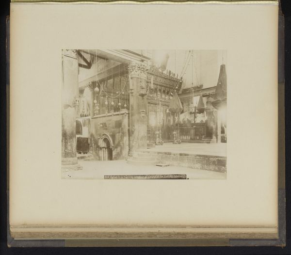 Curator: This gelatin-silver print, taken in 1890 by an anonymous photographer, captures the façade of Joseph Conrad Heinemann’s bakery at Heiligeweg 35 in Amsterdam, featuring a shopfront designed by Gerrit van Arkel. Editor: It’s incredibly austere. The subdued tonality makes it seem almost dreamlike. The rigid geometry and symmetry of the building is offset by the softer light coming through the curtains. Curator: Precisely. Van Arkel’s shopfront, with its ornamented pillars, is an intriguing example of the evolving relationship between architecture and commerce during the late 19th century. Think of the changing nature of labor; a modern design intended to attract new consumer classes and highlight mass produced foods. Editor: I’m also drawn to the texture of the brickwork above the doorway, a subtle pattern repeated, offering visual appeal, while the strong lines of the windows creates a grid-like structure which anchors the photograph. Curator: Considering the societal role of bakeries, places of nourishment at a time of rapid urbanization, this photograph provides a glimpse into the daily lives of Amsterdam residents, including both consumption of mass produced baked goods but also the often-overlooked labor and craft involved in running such an establishment. Editor: So true! While it may appear as just a static image of a building, the play of light and shadow is what gives it that special atmosphere! I find the muted tones evocative, adding another layer of meaning that speaks beyond just the documented history of the structure itself. Curator: Looking at it through this lens of material reality, it's easy to connect the consumption patterns with the workers who baked and sold the products and, by extension, the economic shifts influencing those times. Editor: Definitely food for thought! And just aesthetically, a wonderful composition. Curator: Indeed. Hopefully this brings to light the multifaceted nature of historical artifacts—they contain much more than what initially meets the eye!