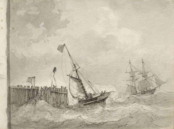 Petrus Johannes Schotel created this drawing of a shipwreck on a rocky coast, employing ink and watercolor to capture the drama of the scene. Schotel was part of a family of maritime painters, and you can see here how he exploits the fluidity of his chosen media, ink wash in particular, to evoke the power of water. The ship itself is rendered with considerable detail, every line of the rigging articulated. Meanwhile, the rocks and roiling sea are depicted with more gestural strokes. This contrast is more than just descriptive. It also speaks to the cultural and economic importance of maritime trade. The Dutch Republic was a seafaring empire in Schotel’s time, but its power was always at the mercy of the elements. Consider how the artist's skilled manipulation of materials gives form to those elements. The tonal variations of the ink wash suggest the weight and force of the water, as well as the ominous atmosphere of the scene. We are reminded that the qualities of the artwork are inseparable from its making, and that these processes always carry a social and historical charge.