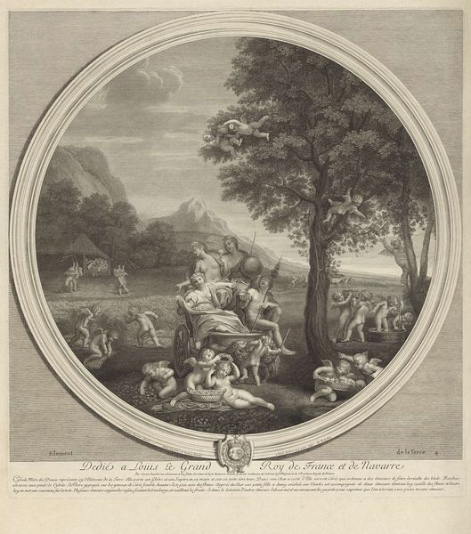 This print by Joseph-Alexandre Le Campion, likely made around 1787, uses delicate lines and pastel colors to depict a rather chaotic scene, the ‘Attack on Amstelveen.’ The composition is organized within a circle, dividing the space into distinct zones: a peaceful village scene on the left, contrasted by a skirmish on the right, punctuated by plumes of smoke. Le Campion employs a semiotic strategy, setting up a binary opposition between order and chaos. The left side, with its neat rows of houses and placid waterway, symbolizes established order. The right side undermines this stability with dynamic figures engaged in conflict. This juxtaposition isn't merely aesthetic; it’s a commentary on the disruption of societal norms by political conflict. Ultimately, the circular frame contains this conflict, suggesting a world where opposing forces are perpetually balanced. It’s a potent reminder that within any apparent harmony lurks the potential for discord.