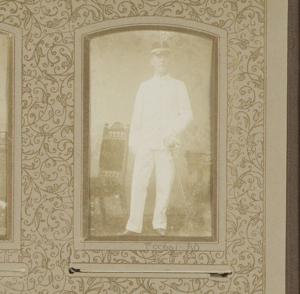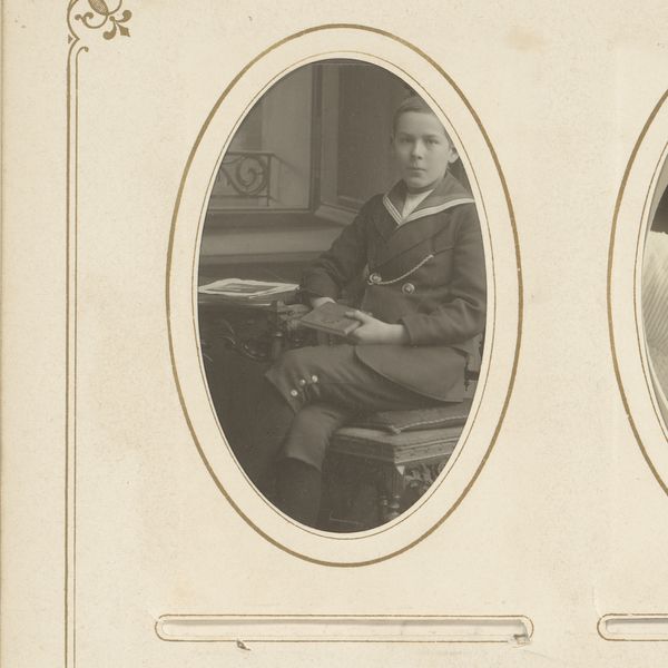 Curator: Here we see a photographic portrait, "Portret van een jonge man met pet", dating roughly from 1850 to 1900, rendered as a gelatin-silver print by Richard Noodt. Editor: There’s something inherently melancholic about this young man's visage. The limited grayscale emphasizes the fine details of his jacket, the austere symmetry of the pose contributing to a quiet, almost reserved sensibility. Curator: Indeed. Consider how the compositional elements work in tandem; the portrait's formal constraints communicate social expectations and identity in this historical moment. The strict framing and sharp focus denote a conscious articulation of selfhood. Editor: I agree; this formality is telling. The portrait comes at a time when photography was solidifying its place within societal power structures, offering new forms of control and identity creation. Do we know anything about the context of why this was commissioned? Curator: Not specifically, no, but one can observe how photography allowed for middle-class access to portraiture which once had only been accessible to the aristocratic classes through paintings. This portrait serves as an exercise in asserting a sense of belonging for the young man. Editor: It's the hat, I think, that also fascinates me. Placed so prominently atop his head, a coded message suggesting perhaps a station or status we can only now surmise. Curator: Precisely. Even the type of garment, a double-breasted jacket with defined edges and structure speaks volumes regarding contemporary notions of discipline, propriety and self-control that resonated among middle classes. Editor: Considering those elements of control and societal expectations, is it possible to say his melancholy also embodies a sense of restricted youth or the expectations put on that period of one’s life? Curator: Certainly. Within its formal aesthetic, one reads visual hints alluding toward latent resistance: subtle emotional currents rippling beneath an outward composure carefully crafted to appease external norms. Editor: I'll certainly view gelatin silver prints from the late 19th Century with a deeper lens moving forward! The structures that influenced this photo were as formative as the resulting image.