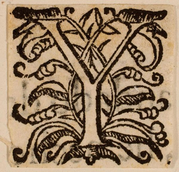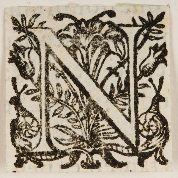 Editor: Here we have "Letter M," an anonymous work from the Harvard Art Museums. It's all in stark black and white and looks like a page pulled from an old book. What do you make of this ornate letter? Curator: It feels like stepping into an apothecary's garden, doesn't it? That 'M' isn't just a letter; it's a little world. The way the flora intertwines, almost climbing the letterform—it’s as if language and nature are dancing a jig. Editor: A dance, really? Curator: Absolutely! Look closely, there's a rhythm, a pulse. It makes me wonder what stories this 'M' could tell if letters could whisper secrets. It's not just seeing, it's feeling the letter. Editor: I like that idea, I will keep that in mind next time I see something like this. Curator: Me too.