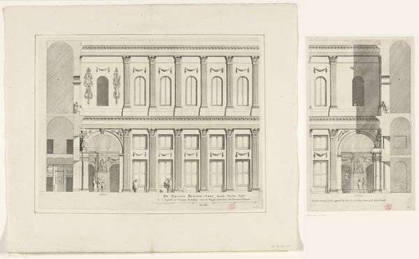 Willem Springer Jr. created this drawing, "Plattegronden en de voorgevel van een gebouw," with lines that betray the rigid formality of 19th-century architectural design. The layout is strictly divided into orderly rooms with a facade of evenly spaced windows, each element echoing a sense of control and symmetry. But the lines aren’t just lines; they’re echoes of ancient spatial principles. The impulse to create order is evident, and takes us back through Vitruvius to the Greeks, who saw in architectural harmony a reflection of cosmic harmony. Consider how the concept of 'order' has traversed through time, shifting from the sacred geometry of temples to the domestic planning. The grid-like arrangement of rooms mirrors a universal desire to tame the chaos of existence into something comprehensible. The impulse towards order speaks to our very human attempt to control our surroundings. This is not just a building, but a manifestation of deeply ingrained cultural and psychological patterns. The image resonates with a collective memory, ever evolving, ever returning.