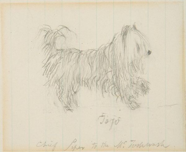 Curator: Here we have Edward Martin Taber's "Dog with Ball," a charming pencil sketch now held at the Harvard Art Museums. Editor: Ah, it feels so fleeting, like a memory barely grasped. All that shaggy fur, but rendered with such light strokes. What a mood. Curator: Its simplicity certainly allows us to consider the role of domestic animals in art and society, and how even a quick sketch can evoke companionship. Editor: I wonder if Taber saw something of himself in that dog—the yearning, the playful energy held in check. Curator: It’s interesting how the lack of a specific date invites us to see it as timeless, a universal image of canine joy. Editor: Exactly, like a little whisper of unconditional love, sketched on a quiet afternoon. Makes you want to grab a ball and head to the park.
