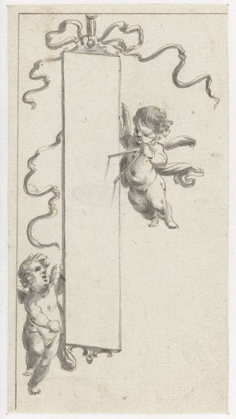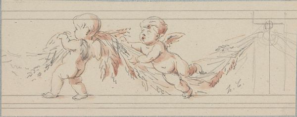 Curator: Let's discuss this intriguing drawing attributed to Sassoferrato, from sometime between 1609 and 1685, titled “Studies of Two Flying Putti and of Drapery (recto); Seated Virgin and Child, and Kneeling Child (verso).” Editor: The figures possess a beautiful quality despite the somewhat academic feel, like figures in an exercise rather than full of emotion. There's an innocence, perhaps even a studied, staged innocence. Curator: Right, it's important to remember the social role of art academies in the 17th century, shaping artistic careers and setting aesthetic standards. You can clearly see Sassoferrato is practicing classical conventions here, mastering idealized human forms which reflects the value system of his era and what kind of works were deemed suitable for display or worship. Editor: Exactly! These aren't just charming babies, they represent the artist honing the visual language of power and religious authority. We are so accustomed to angels, but we tend to overlook how these images have contributed in enforcing and perpetuating certain norms. Curator: Yes, and drawings like these provide a glimpse into artistic processes within those social constraints. The artist is simultaneously creating, imitating and learning, constantly negotiating the expectations of the church, the patrons, and the academies. Editor: The layered aspect fascinates me, though. He’s dealing with complex expectations – reverence, beauty, and technical skill – all while potentially subverting, at least subtly, with the dynamism implied by the flying figures as the drapery lays beneath them as if awaiting the figures to be lain on top. Curator: Well said. Ultimately, examining this work gives us insight not only into Sassoferrato's capabilities, but into how art functioned as a tool of cultural affirmation during this period. Editor: And prompts us to interrogate our contemporary biases when encountering seemingly innocuous images. Art is never created in a vacuum!