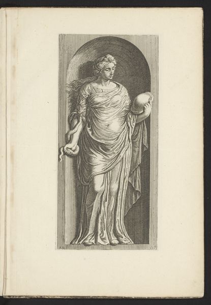 Hubert Quellinus created this print depicting the statue of Justitia, or Justice, for the Amsterdam Town Hall. Quellinus was one of many artists employed to fill the newly constructed building with allegorical references to the city's power. Justice is shown here as a blindfolded woman holding scales in one hand and a sword in the other. While a figure of Justice seems at first neutral, the classical imagery that Quellinus employs is laden with a history of gendered, racialized, and classed power dynamics. For instance, consider how Lady Justice is always depicted as a powerful, white woman. The image seems intended to convey impartiality, but the subject is inherently a symbol of authority. This print asks us to consider who is represented by Justice, and who is excluded. Does Justice exist when the image is rooted in so much visual rhetoric?