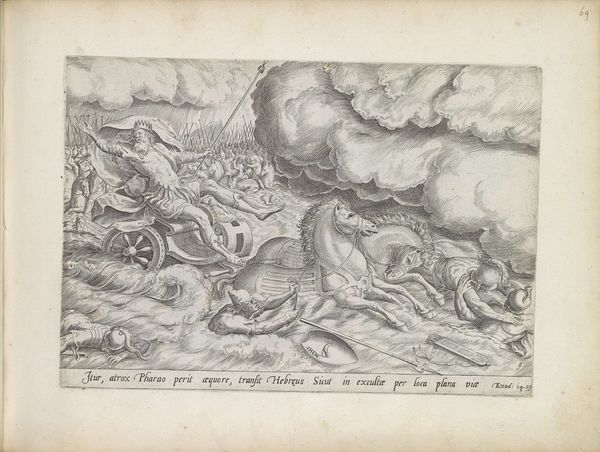 Giulio Sanuto created this print, *Perseus and Andromeda*, sometime between 1540 and 1588. During this period, mythological narratives were often used to reflect societal values and power dynamics. Here, Andromeda is chained to a rock, a vulnerable figure awaiting her fate. Sanuto presents us with a chained woman, exposed, as if to the male gaze. The story of Andromeda, a princess punished for her mother's hubris, becomes a spectacle of female suffering and male heroism. Perseus descends from the sky to rescue her, sword in hand, embodying the archetype of the courageous hero. It’s worth considering the story’s implications: a woman’s suffering as a consequence of another woman’s actions, a male savior intervening to restore order. The story is not just about rescue, but about power, gender, and the narratives we construct around them. It asks us to think about how stories shape our understanding of ourselves and the world.