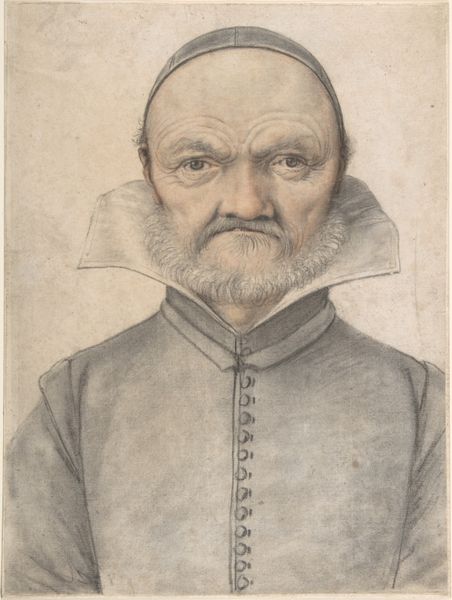 This drawing, whose author is now unknown, is rendered in black chalk heightened with white on paper. We can't be sure when or where it was made, but the man's collar suggests Northern Europe, perhaps the 16th century. In this period, the institutions of art were beginning to solidify. Academies, art markets, and museums began to shape the production and reception of art, establishing standards for technique and taste. The emphasis on observation is a key part of a broad cultural movement. The gaze is direct and the features carefully described, suggesting a desire to capture the individual likeness of the sitter. The development of portraiture was closely tied to shifts in social and economic power. As the merchant class rose, so did the demand for images of individuals who wished to project an image of power. To understand it better, we might research dress codes, sumptuary laws and class structure in the early modern period. This portrait, like all works of art, reflects the social conditions in which it was made.