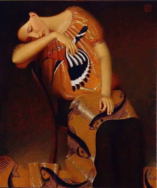 Danny Galieote created this provocative painting, "American Girl," sometime in the late 20th century. The artist captures the viewer’s immediate attention with a juxtaposition of sensuality and national symbolism. Here, Galieote drapes an idealized female figure in the American flag. The flag’s colors are vivid, yet the woman’s posture and the shadowed background lend the work a certain solemnity. Most striking, however, is how the woman is holding brass knuckles behind her back. This positioning makes us consider the multiple layers of meaning embedded within the image. This complex interplay of symbols invites us to question conventional interpretations of national identity and femininity. What does it mean to merge the visual vocabulary of patriotism with such overt displays of sexuality and violence? Galieote destabilizes traditional semiotic codes, prompting viewers to reconsider how these symbols function within a broader cultural discourse. The painting remains a powerful, open-ended commentary on American identity.