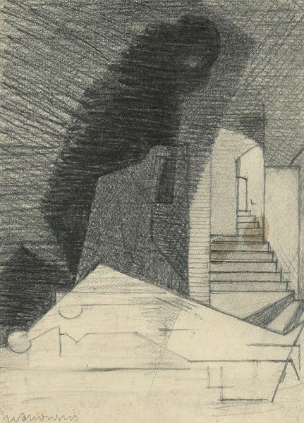 Louis Marcoussis created "Un rêve" using graphite, presenting a monochromatic exploration of form and space. The drawing is dominated by geometric shapes and intersecting lines, creating a sense of depth and disorientation. Marcoussis, influenced by cubism, breaks down the subject into fragmented components, challenging traditional perspective. The interplay of light and shadow enhances the structure of the composition, guiding the eye through the complex arrangement of forms. The artist employs a semiotic system of signs, where each line and shape contributes to a visual language that invites interpretation. The composition invites us to question fixed notions of reality, engaging with broader philosophical concerns about perception and representation. Notice how Marcoussis uses line and shading to create a sense of volume, demonstrating how a simple medium can convey complex spatial relationships, reflecting ongoing artistic interpretation and re-interpretation.