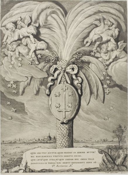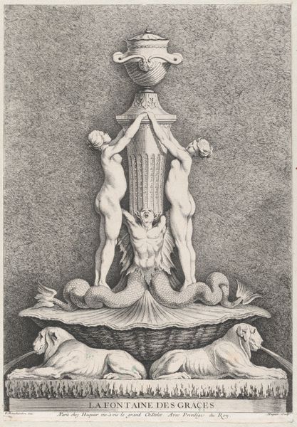 Giuseppe Barberis created this ornate engraving of the Battente Del Portone Del Palazzo Martinengo around the late 19th century. The dominant impression is one of intricate detail within a symmetrical composition, rendered in monochromatic lines and shading. It evokes a sense of classical grandeur. The engraving presents a complex semiotic system. The central cherubic figure, flanked by stylized leonine forms, suggests a heraldic emblem, resonating with power, protection, and perhaps even innocence. The symmetrical arrangement reinforces a sense of order and hierarchy, inviting us to consider the encoding of social values and power dynamics within the architectural details of the Palazzo Martinengo. Note the fine hatching and cross-hatching techniques. Barberis masterfully manipulates line and tone. This level of detail not only showcases the engraver's technical skill but also underscores the enduring human fascination with systems of representation and the visual translation of cultural values.
