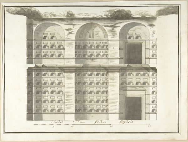 Curator: Giovanni Ottaviani’s print, "Raphael's Loggia in the Vatican," captures more than just architectural detail. It embodies power structures within the Vatican. Editor: Yes, the print is very precise in its rendering of the Loggia. What statements do you see in its architectural details? Curator: Note how Ottaviani meticulously documented Raphael’s designs. He was effectively reinforcing a visual language of papal authority. The Loggia served as a stage for papal appearances, reinforcing hierarchical social order. How might access to this space reflect power dynamics of the time? Editor: So, this image is not simply about aesthetics. Curator: Exactly. It's about how architecture was and still can be used to communicate authority and control. Editor: I never considered how architectural prints could function as powerful political statements. Thanks!