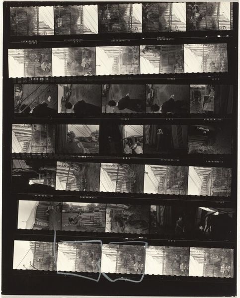 Robert Frank made this photographic film strip, “Edison Museum no number,” in an unknown year, using black and white film. The gridded format, like a page of thumbnails or studies, really emphasizes the process of seeing. There's a visual, material quality to these photographic works: the dark, grainy contrast, the hard edge of the film strip itself. It reminds me of printmaking or drawing; that high contrast and the way the photographic grain gathers feels like the texture of charcoal on paper. In the center, one frame shows a man on a rooftop, captured in the process of working. This feels like a key to the image: process is paramount. It’s not just about the object, it's about the movement, the making, the living quality of art. Frank’s work is often paired with that of Walker Evans. While Evans gives us the decisive moment, Frank gives us the before, after, and everything in between. There’s an openness to these images. The beauty of art lies not in fixed meanings, but in the ongoing conversation it creates.