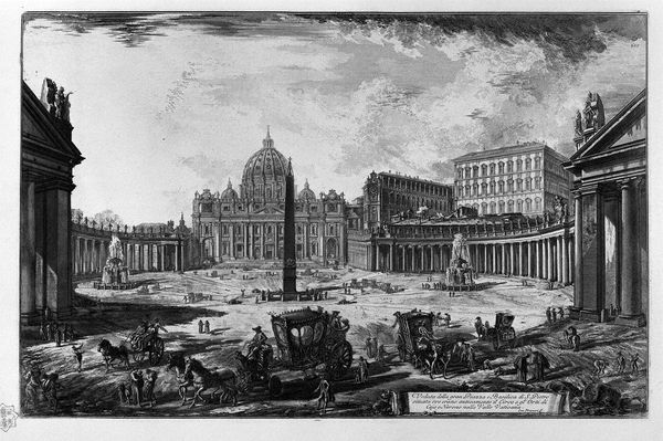 This etching of the Piazza della Rotonda was made in the 18th century by Giovanni Battista Piranesi. He was a master printmaker, known for his dramatic, detailed views of Rome. Piranesi's prints are characterized by their incredibly fine lines, achieved through a painstaking process. First, he would coat a copper plate with wax, and then carefully scratch away the wax with a sharp tool. This exposed the metal beneath, which would then be bitten by acid in a bath, incising the lines into the plate. The plate was then inked and printed, leaving a permanent image on paper. Look closely, and you'll see the architectural detail, the bustling market life, even the texture of the clouds. These images were widely sold and disseminated, offering a glimpse into Roman life. Piranesi was not just documenting Rome; he was constructing an idea of the city, one that resonated with the era’s fascination with classical antiquity. This demonstrates how printmaking could play a vital role in shaping cultural perceptions.