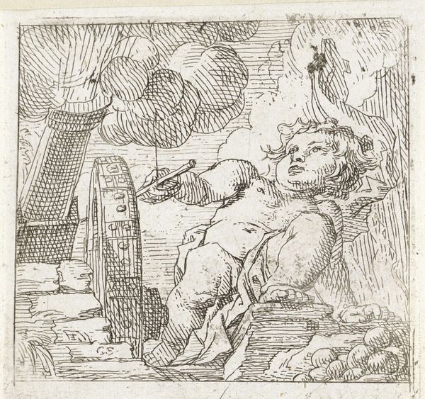 Editor: Here we have Erasmus Quellinus' "Blessing Christ Child," an engraving from the 17th century. It's fascinating to see such a weighty subject rendered in delicate lines. What symbols stand out to you in this piece? Curator: Immediately, the serpent comes to mind. Notice how it's coiled around the Christ Child, yet he's not threatened. Consider the cultural memory associated with snakes—temptation, deceit, even evil. Yet here, the Christ Child seems to dominate it. What does that suggest to you about the artist's intent, about the symbolic narrative he’s trying to build? Editor: It seems to indicate that the Christ Child, even as an infant, holds dominion over sin. The orb with the cross reinforces this, doesn't it? Curator: Precisely. It signifies earthly power under divine authority. How do you interpret the blessing gesture? Is it simply a benediction, or something more complex? Think about who the image would have been for at the time, and how gestures spoke louder than words. Editor: Perhaps a promise of salvation? Or even an absolution? And given the historical context, I'd imagine the serpent at his feet has complex meanings with colonial narratives... Curator: An interesting insight to question the gaze, and colonial narratives intertwined with religion. Consider the radiant light surrounding the Child’s head—what impact does it have on you? Editor: It suggests divinity and innocence. It really reframes the work as a statement of faith and power rather than just a charming portrait. Curator: Exactly. Images like this serve as powerful cultural and psychological touchstones, reminding viewers of core beliefs. Editor: It's amazing how a seemingly simple image can contain layers of cultural meaning. I will now read images and visual symbols much differently.