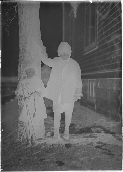 Curator: We’re looking at an intriguing photograph, "Meisje in een tuin," which translates to "Girl in a Garden." It's attributed to Laurens Lodewijk Kleijn, created sometime between 1865 and 1900. What are your initial thoughts? Editor: My first impression is ethereal. It feels like a half-faded memory. The image's ghostly quality, combined with what appears to be a child in a light dress, creates this aura of fragility. You can also make out a set of decorative branches. Curator: Indeed. Kleijn's choice of working 'en plein air,' right in the garden, speaks volumes about the shift in artistic practices during that period. The availability of portable photographic equipment enabled this move. It facilitated a different relationship between the subject and their environment. Editor: Right, that immediacy affects its production and circulation. Consider the materials and processes here—the glass plate negative, the specific chemistry involved. Each stage shapes the outcome, it's far from a straightforward capture, but the hand in the manufacturing really elevates this image. Curator: Precisely. And think about how the sitter is presented. This seemingly casual "snapshot" has the social imprint of portraiture. While also speaking to evolving notions of childhood. There is innocence, yes, but also perhaps a hint of performance. Note the detail in the flower pattern on the dress and trim. Editor: I’d add, seeing the girl holding the gardening pail grounds this. It's the little domestic material details like that which suggest an understanding of the labour connected to land, whether the artist recognised that significance. The pail seems disproportionately big for her. Curator: It's easy to get lost in its visual poetry and forget this object’s functionality. Also, the blurred figure on the right could symbolize someone present in the garden but visually withdrawn. Editor: It all comes back to how processes of visibility and representation reflect very tangible practices and materials in this case. Curator: It's true, isn't it? By observing these photographic techniques and the circumstances of production, a story can emerge from a seemingly simple photograph. Editor: It's in decoding the layering of photographic materials that its broader implications unravel. What seems like a moment frozen is the confluence of very material considerations.