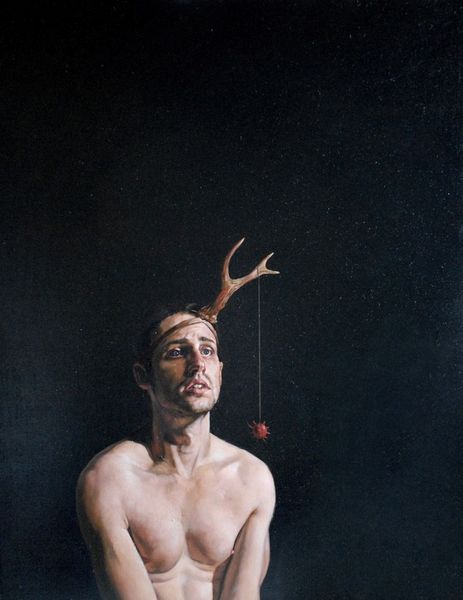Roberto Ferri made “CUPO FUOCO” using oil paints to construct a dark, brooding scene with meticulous detail and classical technique. The smooth, almost porcelain-like skin tones are achieved through a glazing process, where thin layers of paint are built up to create luminosity and depth. The contrast between the highly rendered figure and the softly blurred background intensifies the drama, drawing us into the emotional space of the figure. Notice the way Ferri uses light to sculpt the body, accentuating muscles and bone structure. A particularly poignant detail is the subtle redness around the figure's knuckles, hinting at a raw, internal struggle, a detail that elevates the painting beyond mere technical skill. Ferri’s work shares a sensibility with painters like Caravaggio, but with a contemporary twist. It's a conversation across centuries, where technique serves not just representation but a deeper exploration of human emotion.