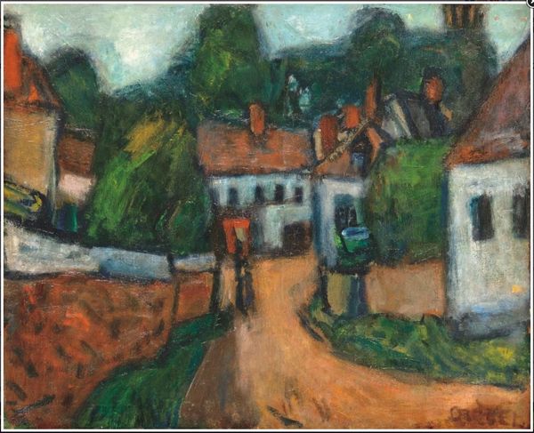 Leo Leuppi made this painting, Bünishof, with an Expressionist style – you can see it in the bold colours and simplified forms. The house is central, almost childlike in its rendering, and the scene comes alive through this process of making. The colours are really juicy here, aren't they? The thick application of paint gives everything a tactile quality, like you could reach out and squish it. There’s this tension between the flat areas of colour and the suggestion of depth created by the composition. Look at how he’s used these little dashes of red and pink in the bushes to create this sense of volume and form. It’s all about the physicality of the paint, how it sits on the surface, how it reflects light, how it oozes out of the brush. This reminds me of the work of Gabriele Münter – that same interest in capturing a feeling or emotion through colour and form. It’s like they’re both trying to figure something out, not just represent it. Like art itself, this piece is not about fixed answers but about embracing a range of perspectives.