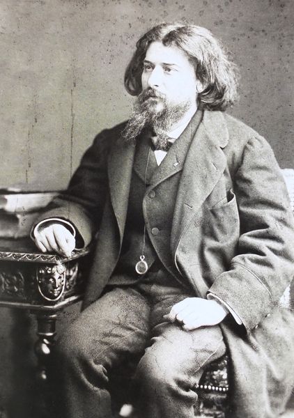 This is a photograph of Alphonse Daudet by Felix Nadar, made sometime in the mid-to-late 19th century. Nadar was well known for his portraits of prominent cultural figures, capturing writers and artists in their intellectual milieu. Consider Daudet's gaze, averted and contemplative, along with his somewhat disheveled hair and beard. Here is a man of letters, a thinker. Nadar presents us with a Romantic vision of the artist. However, this image exists within a very specific social context. Photography at this time was still a relatively new medium, one which rapidly democratized portraiture. Nadar was not merely documenting Daudet's likeness; he was actively constructing and disseminating an image of literary genius that both reflected and shaped cultural values. How might our reading of this image change if we consider the historical context of its production and consumption? Does it challenge or uphold traditional representations of masculinity and intellect?