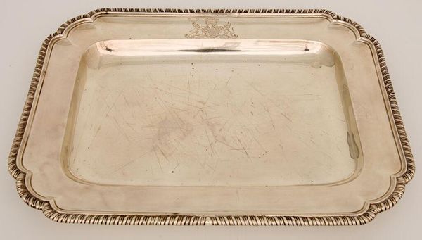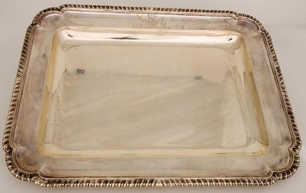 Editor: So, we have this shiny silver piece, titled "Meat Dish" by Thomas Robins. It’s at the Harvard Art Museums. I’m immediately struck by how simple yet elegant it is. What can you tell me about it? Curator: Well, it’s a curious thing, isn’t it? It gleams with a sort of quiet confidence. I imagine it sitting on a table laden with food, reflecting candlelight...Do you think Robins intended it to be purely functional, or did he see something more, some potential for artistry? Editor: I hadn’t considered that. So, more than just a dish? Curator: Perhaps a stage for culinary delights, or a mirror reflecting the wealth and status of its owner? Food for thought, indeed. Editor: Definitely something to chew on. Thanks!
