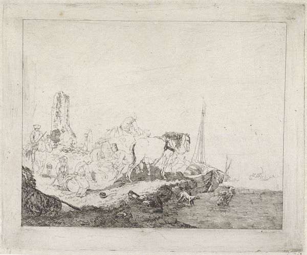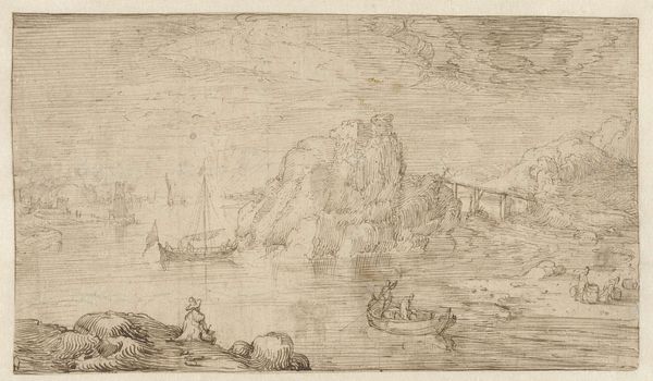 Bonaventura Peeters I created this etching of a seascape with a fort on a rock some time in the 17th century. The composition is dominated by the contrast between the static, solid forms of the rocks and fort, and the dynamic, fluid lines of the sea and sky. Notice how Peeters uses delicate lines to create a sense of depth and atmosphere. The etching technique, with its fine, precise lines, allows for a remarkable level of detail, particularly in the depiction of the ships and the architectural elements of the fort. The arrangement of elements – the rocks on the periphery leading the eye towards the central fort, and the positioning of the ships – creates a balanced yet dynamic composition. Through formal means, Peeters has constructed not just a picture, but a stage upon which ideas of power, nature, and human endeavor can be enacted. The fort and ships signify trade and exploration, while the ocean and sky embody limitless possibility. The artwork embodies an ongoing cultural and philosophical discussion about our relationship with the world.