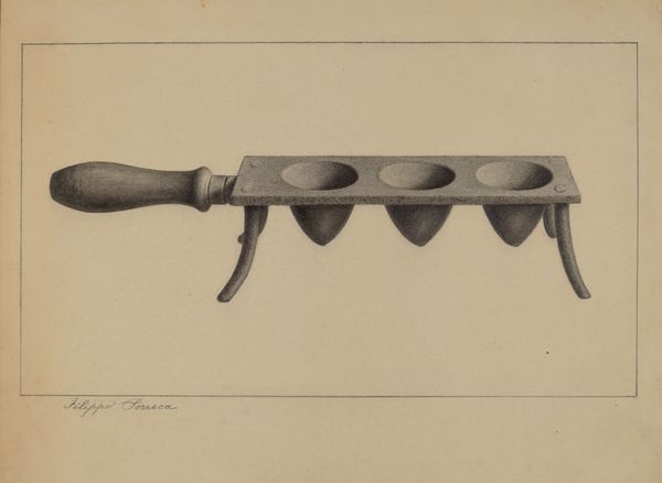 This Carpenter's Clamp was made by Alexander Anderson using pencil and watercolor. What strikes me is its simplicity – an object of labor, rendered with so much care. The color palette is restrained, almost monochromatic, dominated by the warm hues of the wood and the paper. But look closer, and you'll see subtle variations in tone that give the clamp depth and weight. It's a dance between light and shadow, revealing the textures of the wood, every little imperfection. The artist doesn’t conceal the process of making; instead, the pencil lines and brushstrokes remain visible. Notice how the spiral threads of the screw are rendered. Each one is delicately drawn, creating a mesmerizing rhythm. It’s a wonderful meditation on form and function. Thinking about other artists, it makes me think a little of Agnes Martin, who found beauty in the grid. But here, instead of a grid, it’s the repeating pattern of a carpenter's tool. It's a reminder that art can be found in the most unexpected places, transforming the ordinary into something extraordinary.