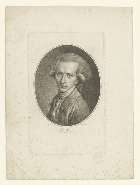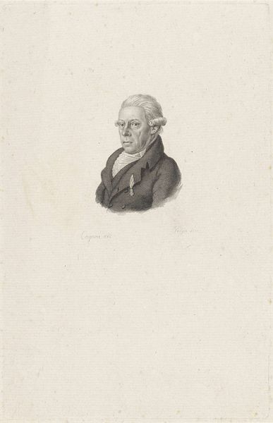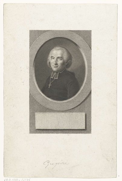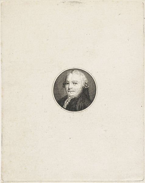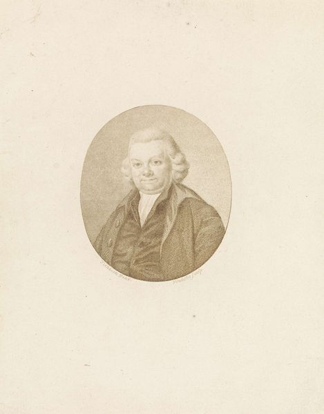 Editor: This is "Portrait of Pieter Paulus" by Jacobus Wijsman, likely made sometime between 1778 and 1827. It looks like an engraving, maybe a print. The face seems to float a bit, isolated. What resonates with you about this piece? Curator: What strikes me first is the carefully constructed oval framing the subject. The oval, a symbol of the egg, represents potential, birth, a containing force. Given Paulus's political role, does this framing perhaps subtly suggest a circumscribed sphere of influence or a man on the cusp of significant societal contribution? Editor: That's interesting. I was just seeing it as a traditional portrait style. Curator: Indeed. The Neoclassical style itself leans heavily on Roman ideals, resurrecting a visual language of civic virtue. Consider the almost severe clarity of line, the lack of ornamentation that could be seen as honest but also austere. Do you see a possible connection with how public figures wished to be perceived at that time? Editor: Maybe. It does feel serious and straightforward. No frills. Was this a common way to depict people back then? Curator: The engraving medium facilitated wider distribution of images, allowing for the dissemination of these ideals and the figures who embodied them. Think of it as early "branding"— crafting a visual persona. The individual depicted, Paulus, becomes an archetype. What aspects do you think are essential to that visual persona? Editor: Well, the clothing is simple, and he looks right at you. I suppose that conveys honesty and directness. I hadn't really thought about the distribution aspect before, or that people were building an image intentionally. Curator: Visual culture holds immense power to shape public opinion and encode values that linger across generations. And what lingers helps forge a cultural memory. Editor: Thanks. I hadn't considered all the symbolism embedded in what seemed like a standard portrait. I'll definitely look at art differently now!