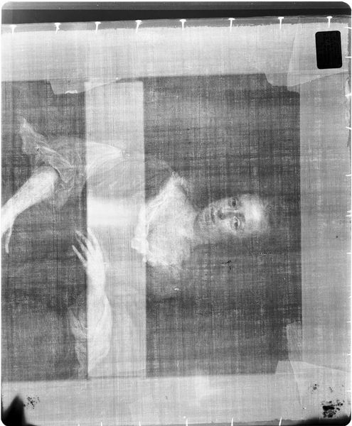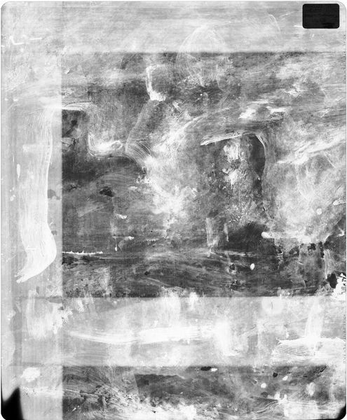 Editor: This is an X-radiograph of "St. Catherine," by an anonymous artist. The grid format is interesting. What can you tell me about the visual impact of this piece? Curator: The radiograph, through its use of X-rays, reveals the painting’s understructure. Note the composition's reliance on layering and the stark contrast between areas of density and transparency. How does this altered perception affect your understanding of the artist's process? Editor: It shows a behind-the-scenes view, almost like a diagram. It's less about beauty and more about...construction? Curator: Precisely. The X-ray exposes the material reality of the artwork, shifting the focus from representational aesthetics to the physical components and their arrangement. It allows us to consider the painting as an object. Editor: That’s fascinating. Thanks for helping me see it differently. Curator: My pleasure. It’s rewarding to consider art beyond its surface.
