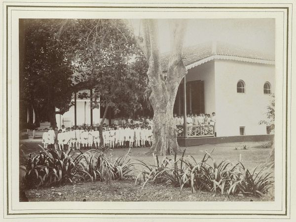 "Woonhuis" is an albumen print made in the Dutch East Indies by Kassian Céphas. Céphas was one of the first Indonesian photographers. Born to a Javanese court painter, he was christened as a Catholic and began his career documenting the antiquities of Java. This photograph offers a glimpse into the colonial landscape of the Dutch East Indies, capturing a residential building flanked by lush vegetation and two figures in white uniforms. The careful composition and the presence of the uniformed men subtly highlight the power dynamics inherent in colonial rule. As one of the few native photographers, Céphas navigated the complexities of his identity, both embracing and subtly challenging the dominant colonial gaze through his work. The soft tones and serene setting invite contemplation on the complex interplay between colonizer and colonized, observer and observed.
