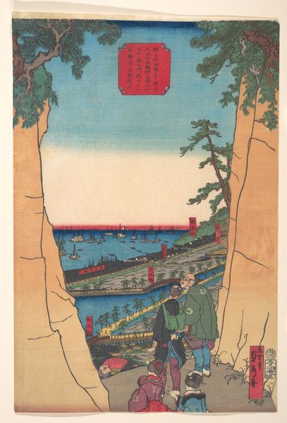 Utagawa Hiroshige created this woodblock print called ‘Kanagawa, bergopwaarts’ in nineteenth-century Japan, a time when urban culture flourished alongside strict social hierarchies. This print is part of a series known as ‘Fifty-three Stations of the Tokaido Road’. It reflects the intersection of commerce, travel, and class distinctions in Edo-period Japan. We see travelers on a road that winds past modest buildings; commoners going about their daily lives. In contrast, boats glide across the water, hinting at connections to other regions, other ways of life. Hiroshige was a master of capturing the atmosphere of a place. The soft colors evoke a sense of tranquility, while the careful composition draws our eye along the road, inviting us to imagine our journey. Through this work, we see not just a landscape but also glimpse the dynamics of a society on the move, shaped by trade and bound by social custom.