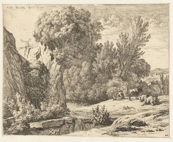 Frans Boudewijns made this landscape with ruins using pen in the late 17th or early 18th century. The image presents us with an idealised pastoral scene, a popular subject in artistic academies of the time, but it is the inclusion of the ruins that connects this image to its wider social and cultural context. The ruined buildings place the viewer in a distant historical past. The Italian countryside was popular with Northern European artists. Looking at similar works from the period, archival documents, and publications such as illustrated travel guides, we can begin to understand how Boudewijns' contemporaries understood Italy as the origin of Western civilisation. The visual codes of classical architecture would have resonated with educated viewers, evoking associations with the great empires of the past. The image comments on the cyclical nature of civilisation, and perhaps questions the permanence of the present. These historical associations provide a lens to explore the institutional forces that shaped the art market of Boudewijns’ time.