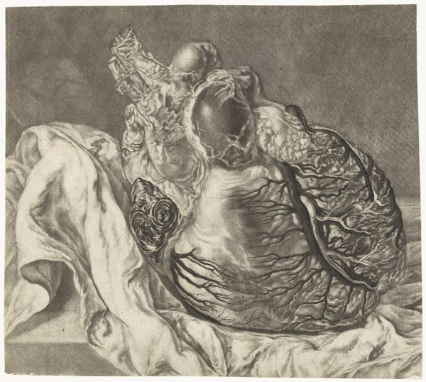 Around 1735 Jan l’Admiral printed several remarkable anatomical prints in colour, among others on commission for the celebrated physician Frederik Ruysch. For his illustrations of the cerebral membrane (the skull of an unborn child) and a human heart he experimented with ever different colours, and made various versions of them. The objective was to provide medical practitioners with the most precise and realistic images possible.