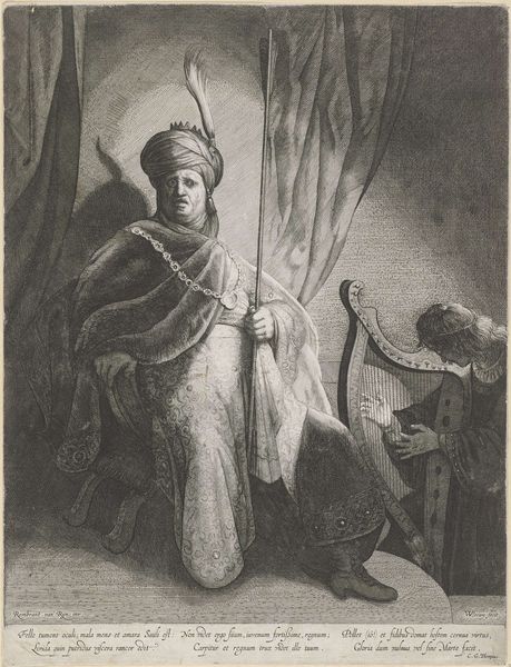 Rembrandt van Rijn painted David Playing the Harp to Saul in oil on wood. The somber palette is punctuated by moments of brilliance. Notice how light articulates the textures, from the plushness of Saul’s garments to the lustrous strings of David's harp. The composition directs our gaze to the figures, set against a dark backdrop, where Saul is central. David, on the other hand, is almost hidden. This juxtaposition invites a semiotic reading. The chiaroscuro, the contrasting interplay of light and dark, could be interpreted as a symbolic representation of Saul’s inner turmoil, with David’s music serving as a fleeting alleviation. The structure of light and shadow embodies a psychological depth. This technique functions not merely as an aesthetic choice but engages with the broader cultural discourse. The artwork destabilizes the traditional understanding of power and vulnerability by embedding layers of emotional and intellectual complexity.