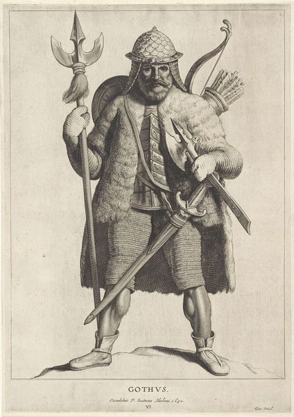 Pieter Soutman created this print of St. Bavo as part of a series of Northern and Southern Netherlandish Saints. It's an engraving, meaning the image was incised into a metal plate, which was then inked and printed. The technique allowed for detailed lines, seen here in the saint's armor and regal cloak. Consider the labor involved; each line painstakingly carved, the plate carefully inked, and then printed. These prints were commodities, produced for a market and consumed as devotional images. The fact that it is reproducible raises questions about the role of images in spreading religious and cultural ideas. Soutman emphasizes Bavo’s status through his garments, and the eagle which symbolizes the saint. Soutman was not only immortalizing St. Bavo in his print, but he was also participating in a broader culture of art, labor, and religious devotion. Looking closely at the materials and processes involved helps us understand the social and cultural context of the artwork.