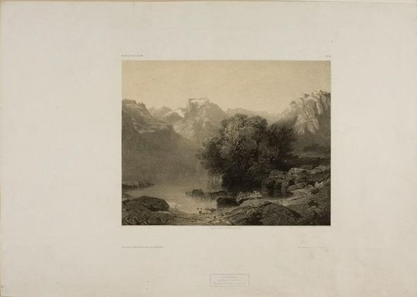 Editor: So, this is Alexandre Calame’s "Landscape Number 13," and honestly, it feels like stepping into a dream. The hazy mountains and the still water create such a sense of serenity. How do you interpret this work? Curator: Ah, Calame. He was all about romanticizing nature, wasn't he? For me, it's about the sublime – that feeling of awe mixed with a bit of fear when you're confronted with nature’s grandeur. Do you notice how the little hut seems almost swallowed up by the landscape? Editor: I do! It’s like nature is the main character, and humans are just tiny guests in its theater. Curator: Exactly! Calame is reminding us of our place in the world, making us feel wonderfully small. Editor: I never thought of it that way. Thanks; that’s a great perspective! Curator: My pleasure. Art's a conversation, after all. It's good to see fresh insights!