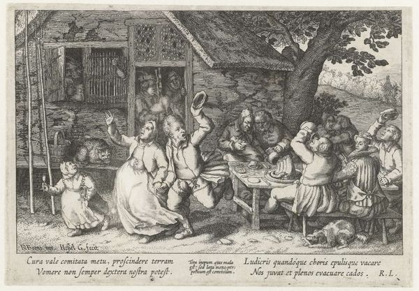 Pieter Serwouters created this engraving, titled "Brassende bedelaars," now held at the Rijksmuseum. The scene is teeming with life, but let us focus on the prominent symbol of the dance. In the foreground, a group of children, perhaps emulating the adults around them, engage in a circular dance. This motif of the circle carries within it layers of meaning that stretch far beyond this specific image. In many cultures, the circle represents wholeness, unity, and the cyclical nature of life. We can trace this symbol through ancient rituals, where dances formed a connection to the cosmos. Consider the ring dances in classical Greece, celebrations that are very similar to the children in our engraving. Even today, we find echoes of this motif in folk traditions, where the circle dance persists as a symbol of community and continuity. The image invites us to ponder the human condition, to recognize the threads that connect us across time and culture.