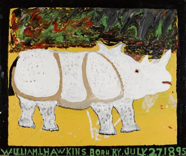 William Hawkins made Spotted Leopard, most likely with house paint, a material he favoured for its availability and cost. The painting is like a map of Hawkins’ mind. The spots on the leopard are daubs of green and brown, each one a small, contained world. I love the way he builds up the paint, thick and gloppy, like he's frosting a cake. It’s hard to tell what kind of tool he used to apply the paint. Was it a brush, a palette knife, or maybe even just his fingers? I particularly love the little scribbles in the top right corner, adding a whimsical, childlike touch to the composition. Hawkins has a raw, untamed energy that reminds me a bit of Alfred Wallis, another self-taught artist. Both artists embrace a kind of beautiful awkwardness, and create art that speaks from the heart. Hawkins' art is a reminder that art isn't about perfection, it's about expression, and about creating something that is uniquely your own.