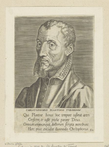 Curator: Looking at this small print from 1597, an engraving now housed at the Rijksmuseum, we see a portrait identified as Jean de Poligny. Editor: My immediate sense is somber, a feeling emphasized by the meticulous detail and the monochromatic tones. The oval frame gives the subject a formal, almost claustrophobic feel. Curator: Absolutely, and let's contextualize that formality. Portraiture in the late 16th century served very specific purposes—affirmation of status, lineage, and political alignment. Poligny, whoever he was, commissioned this or it was made on his behalf to broadcast a particular image of himself. Editor: Precisely, the clothing, the beard, the very gaze are all carefully constructed to project authority. I'm drawn to the way the artist uses fine lines to render the texture of the face and clothing, highlighting a specific kind of masculine ideal of the time. It begs the question, what societal expectations were at play that dictated such rigid portrayals? Curator: It’s crucial to note the technical aspect too; engravings, being a more accessible medium than painting for instance, allowed for wider circulation of these ideals. So, beyond the immediate sitter, Poligny in this instance, the print actively participates in disseminating social norms and power structures to a larger public. Editor: It does make one consider who had access to such images and who was excluded from representation altogether. Were there women, or members of marginalized groups who might also have sought to assert their identity in this way? Curator: A valid point! Thinking about the Rijksmuseum's acquisition of this print, it represents an interesting example of art's continued public role today; what stories do we chose to tell through institutional selection processes? Editor: And whose narratives remain underrepresented or ignored? Food for thought about the ever evolving politics of art. Curator: Indeed. Examining this piece gives an opportunity to look at the socio-political meaning making within art's sphere. Editor: And to consider ways these old narratives may be reconstructed and challenged, so this piece also reflects our current place in history.