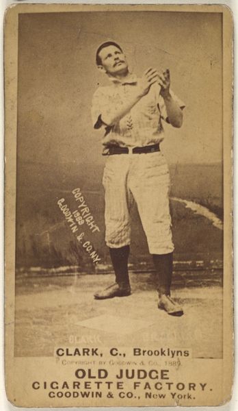 This small card was made by Goodwin & Company for Old Judge Cigarettes around 1889. It features Elmer Ellsworth "Sy" Sutcliffe, a catcher for Cleveland. Produced during baseball's early professional era, these cards were inserted into cigarette packs as a promotional tool. They capitalized on the growing popularity of baseball while simultaneously promoting the consumption of tobacco. The cards reflect a broader cultural trend of using sports figures to endorse products, intertwining athletics with consumer culture. These cards not only documented baseball players but also offer insights into the era's advertising strategies, printing techniques, and the commercialization of sports. We historians consult trade publications, business records, and period newspapers to understand how institutions shape our cultural values and everyday lives. The image reminds us of how cultural phenomena are often tied to economic structures.