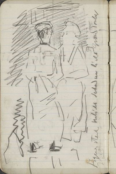 Curator: What a poignant sketch! We’re looking at “Vrouw buigt voorover naar een kat,” or “Woman bending forward towards a cat,” by George Hendrik Breitner, created sometime between 1895 and 1898. Editor: There’s something immediately intimate about it. The soft pencil lines give it a casual feel, like a stolen moment observed and captured. I am drawn to its unfinished quality. Curator: Indeed. It's deceptively simple. The figure’s posture – the slight curve of the back, the gentle inclination of the head – speaks volumes about connection and tenderness. Think of the pose as a symbol, the archetypal devotion people feel towards beloved cats. Editor: I agree with that in as much as that interspecies bond and the feminine-coded intimacy can't be parsed without looking at the sociohistorical landscape of the turn of the century. Breitner occupied himself with raw, urban environments – so the tender act gets underscored by harsh modernity. Is it really a gentle domestic scene? Or is it posed, contrived? Curator: Possibly both. I interpret the sketch as a glimpse into the private sphere. Perhaps the woman in the drawing represents vulnerability within that rapidly changing, sometimes unforgiving world, searching for familiarity with our long association of women and domestic animals. Cats are stand-ins for autonomy in confined spaces. Editor: Right, cats have been symbols of feminine wiles, witchcraft and otherworldly wisdom throughout history and visual culture, of course. Perhaps the bending act is in and of itself, then, symbolic of acquiescence to something beyond the sitter’s own earthly limitations and boundaries? I think the very openness of this drawing prompts such questions about female subjectivity in the face of societal change. Curator: I think the quick lines actually suggest not submission but fleeting tenderness, unvarnished and immediately accessible, like the affection cats invite! These themes linger long after we turn our attention away from it. Editor: Agreed, and it certainly prompts an introspective pause, hopefully inspiring people to look a little deeper into everyday encounters.